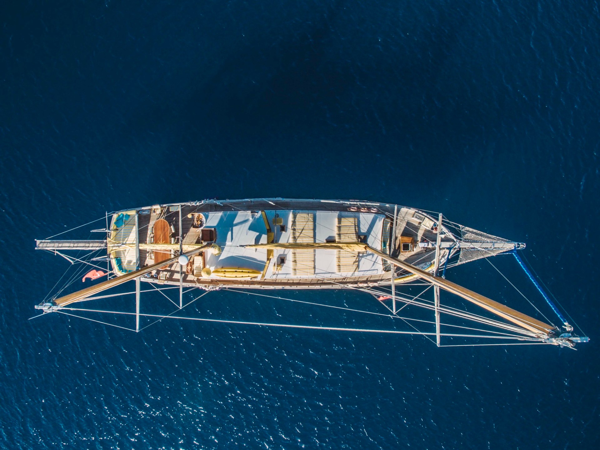 There are various areas for socializing and relaxing onboard FORTUNA. Foredeck there’s a huge sitting area and sunbeds, at the aft deck you’ll find a nice dining table that sits all the charter guests. In the evening when the sun is gone, the shadow tent can be taken away and you’ll have a dinner under the stars. It is one of the nicest experiences during your cruise.