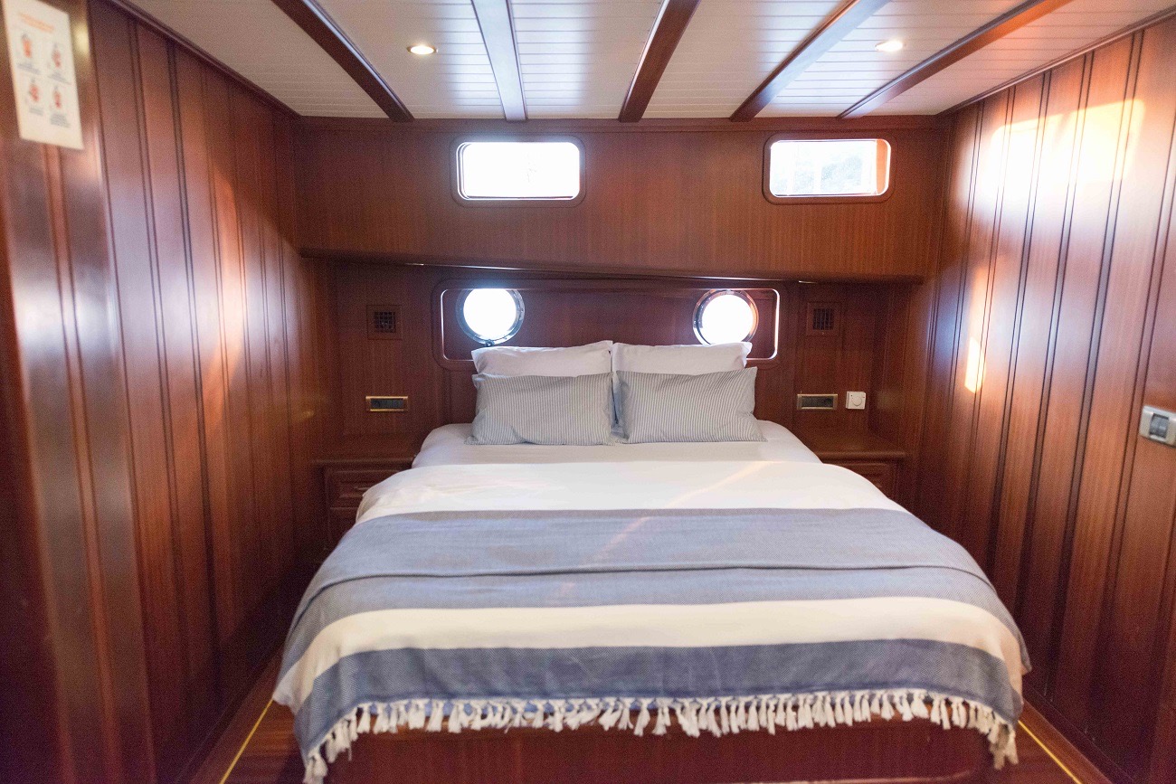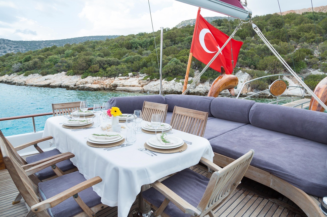 The yacht is based in Bodrum, the heart of the Turkish Riviera, and offers flexible itineraries along the Aegean coast. From Bodrum you can sail towards Datça and Marmaris, or cruise into the Gulf of Hisarönü, discovering quiet bays and charming fishing villages. The freedom to choose where to spend each day—whether anchored in a secluded cove or docked in a lively harbor town—is one of the highlights of a private gulet charter.