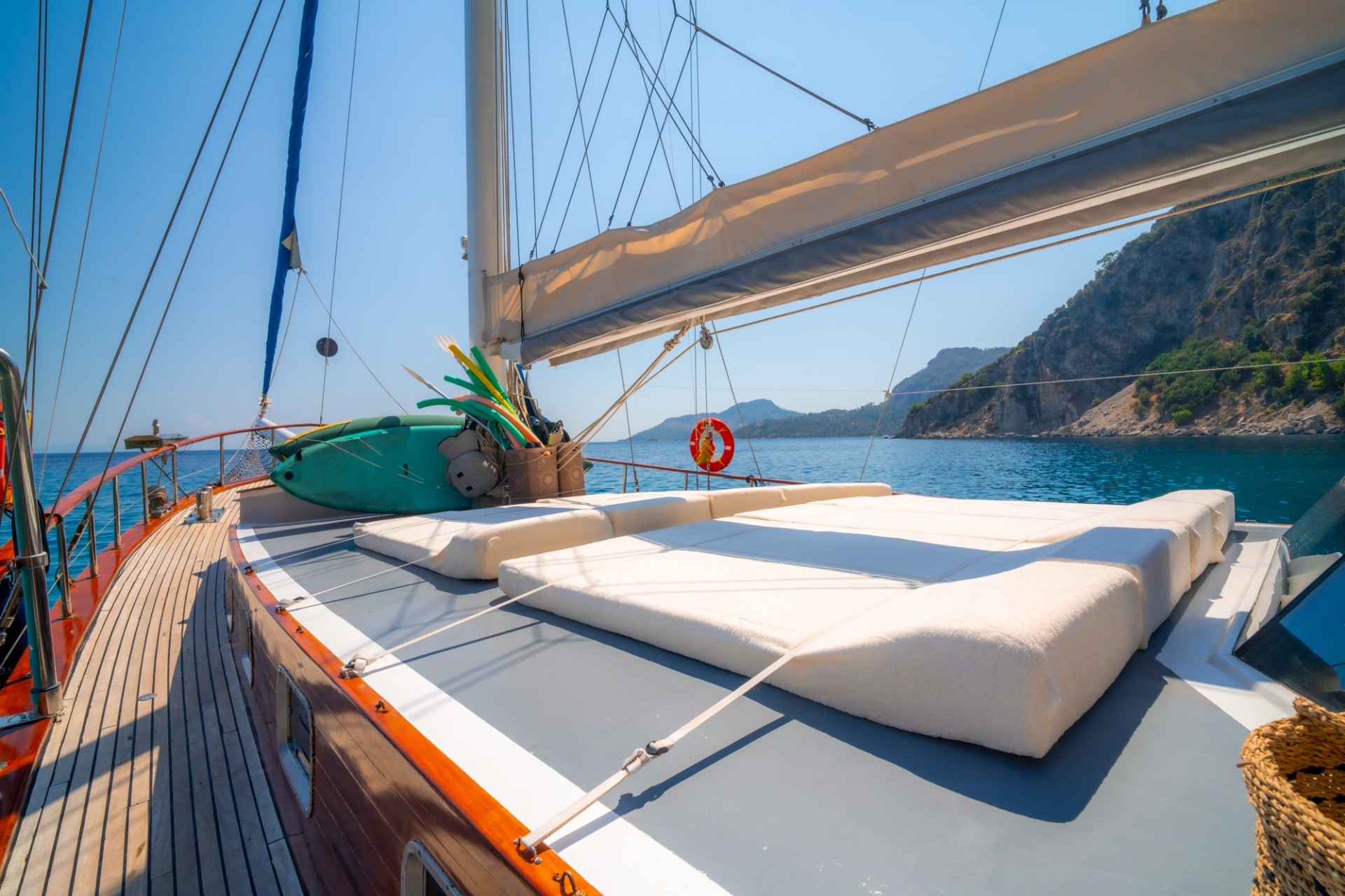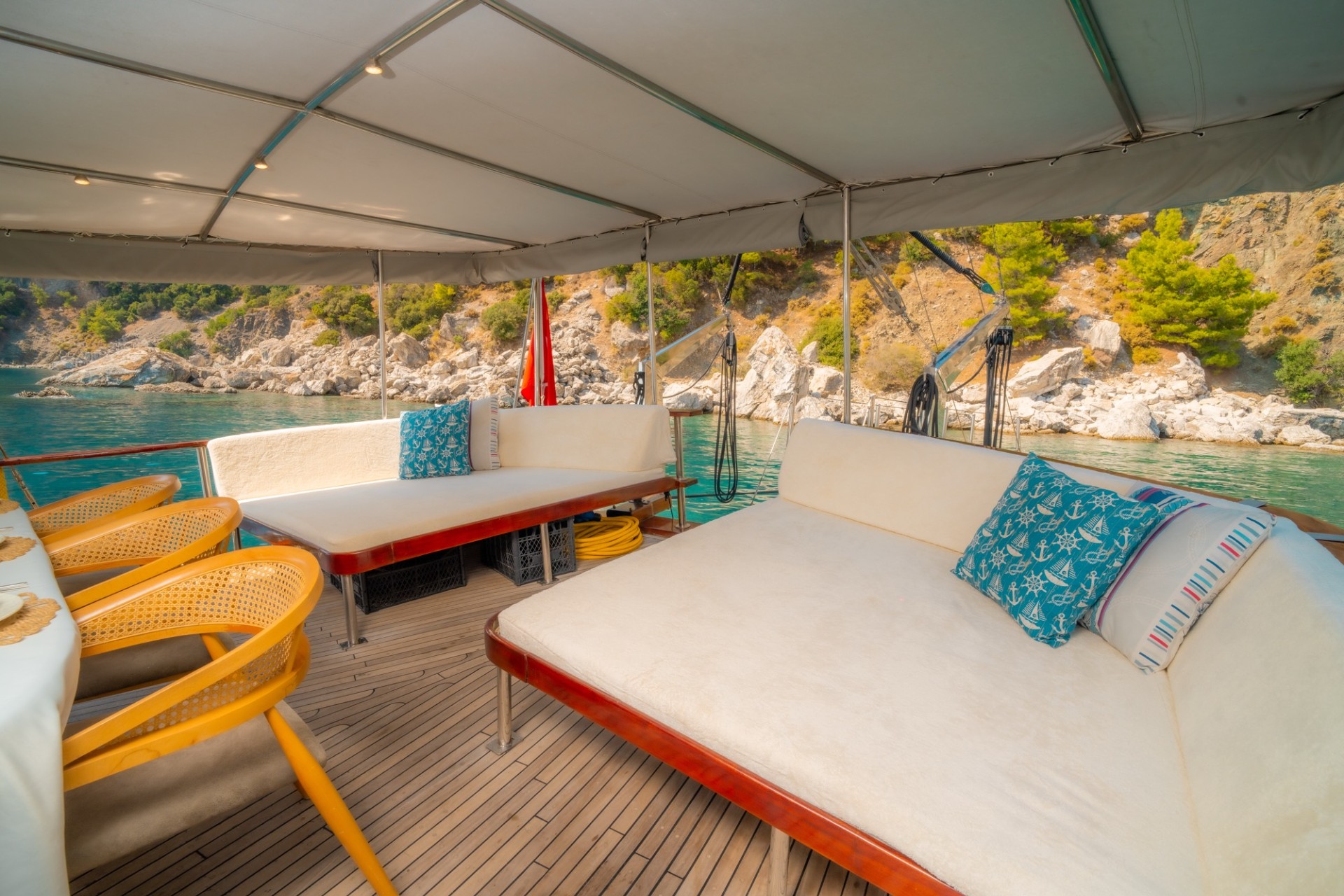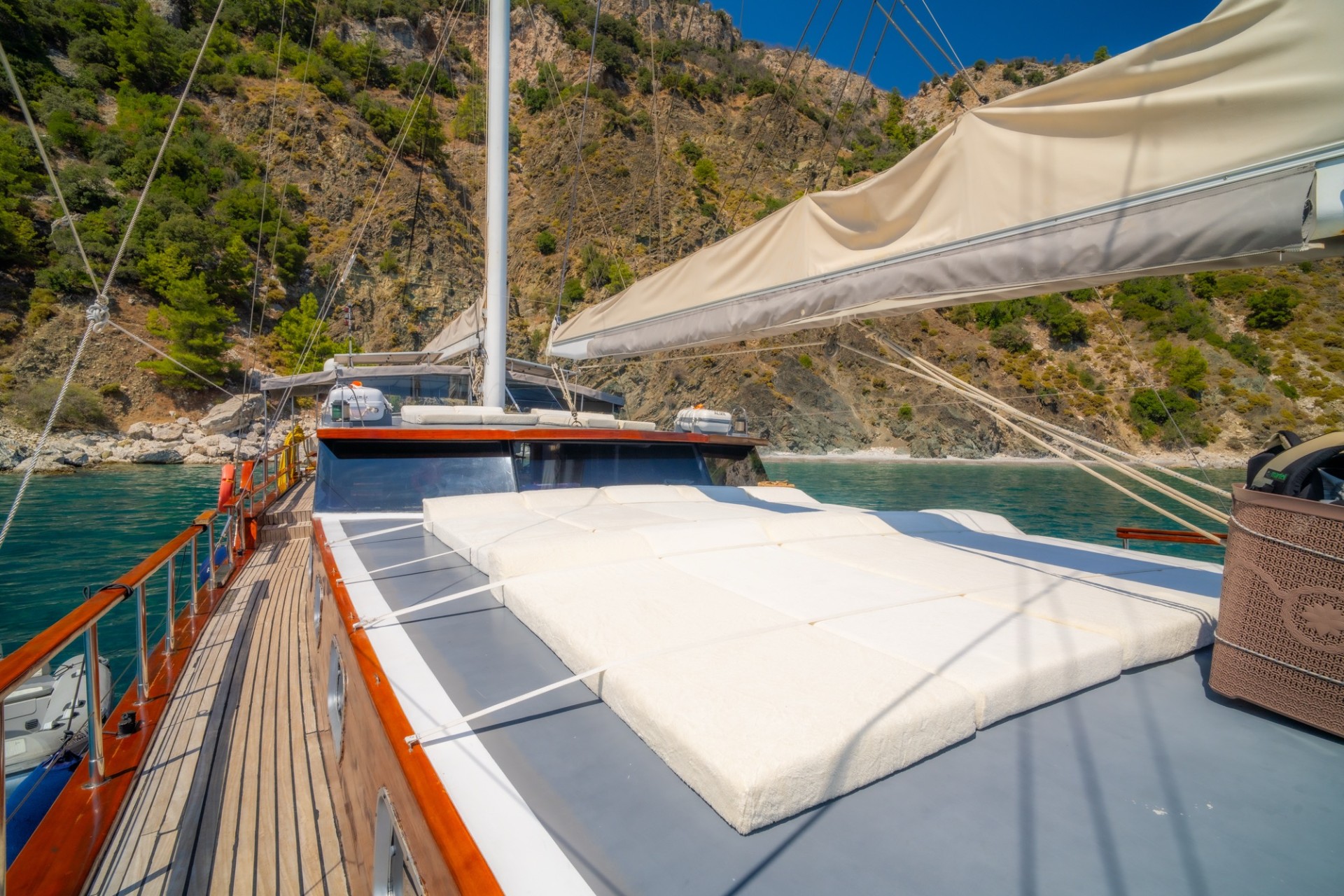 Charter rate includes, yacht insurance, fuel for average cruising time a day, daily cabin and bathroom cleaning, crew services, mooring fees in Türkiye, rent of the yacht, service boat, canoes, paddle boards, etc., ship's laundry (if available)