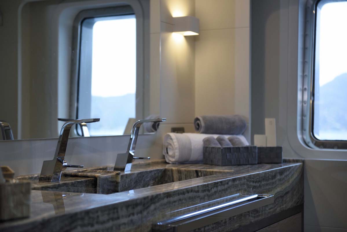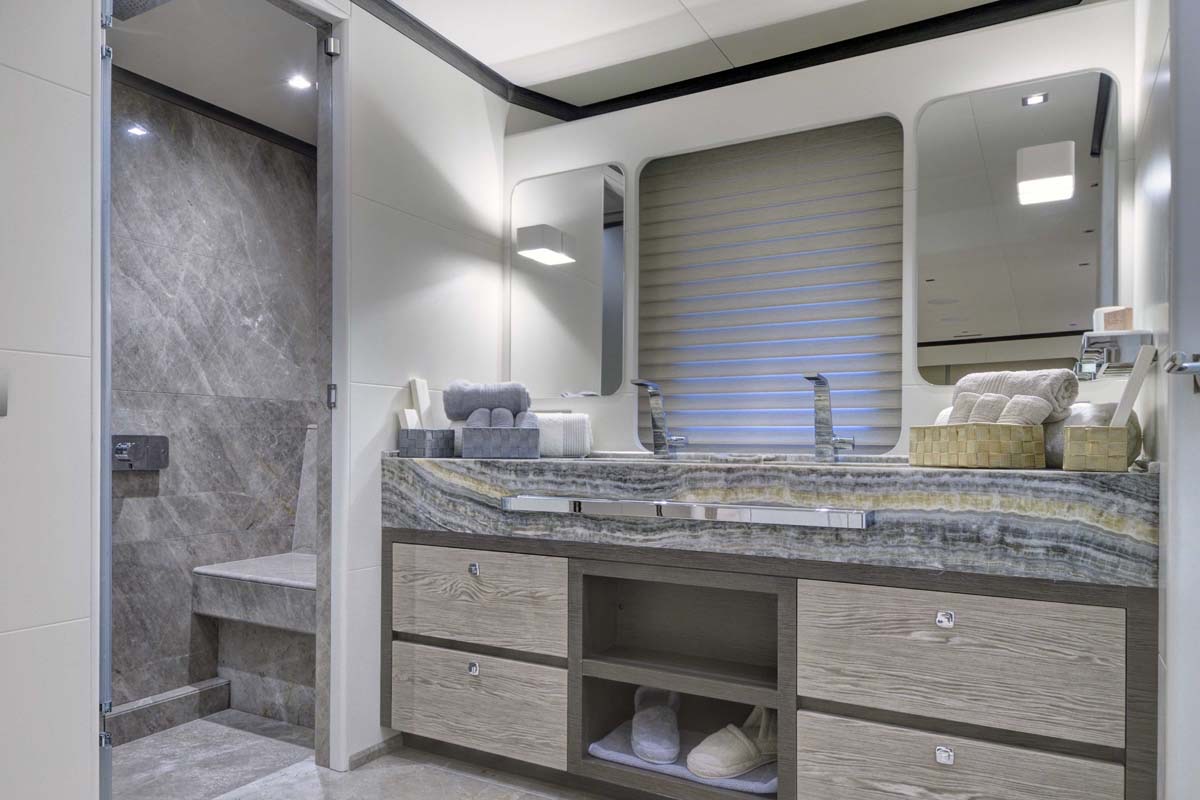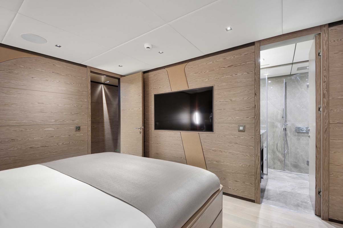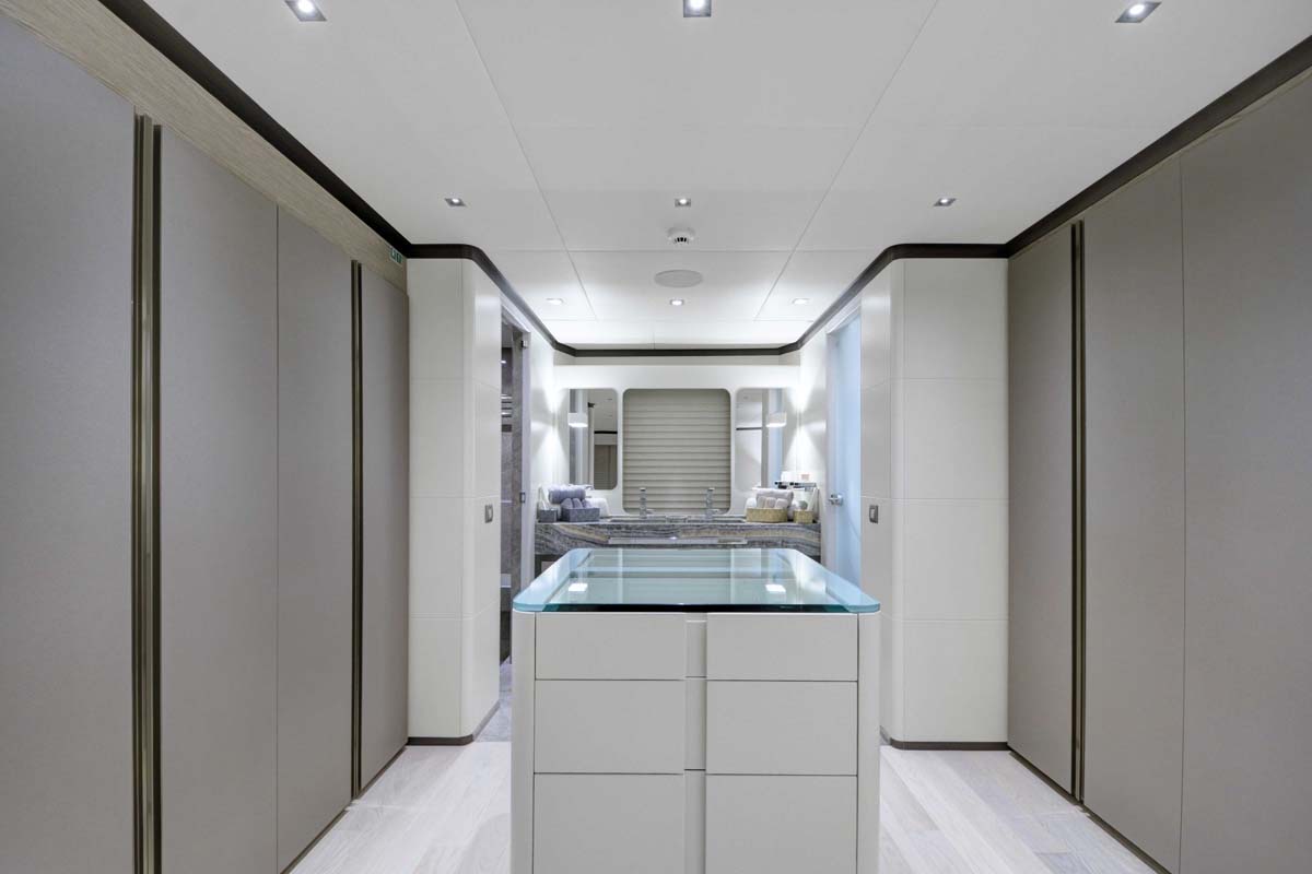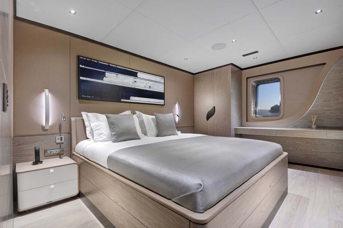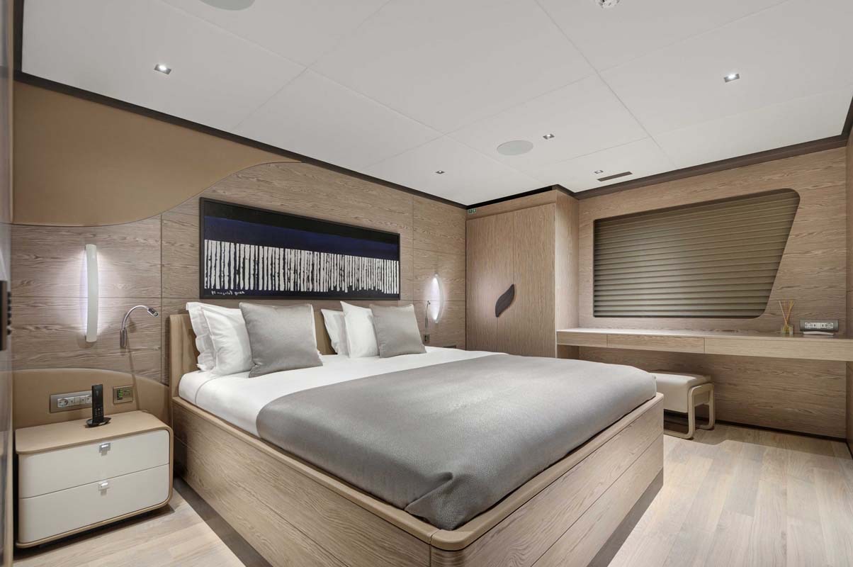 ALL ABOUT U's interior configuration has been designed to comfortably accommodate up to 12 guests in 6 cabins comprising a master suite, 1 VIP stateroom, and 4 double cabins. The interior of the yacht is air-conditioned and the decor is "understated elegance".