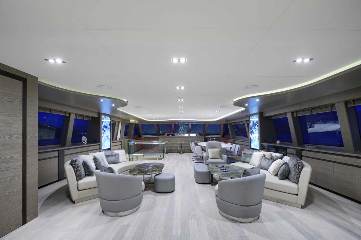 The superyacht, ALL ABOUT U was launched in August of 2018 and is characterised by a striking ice-blue hull, a fabulous drop-down swim platform, a fun sundeck with bar and surround seating, a choice of dining areas and a stylish and modern interior.