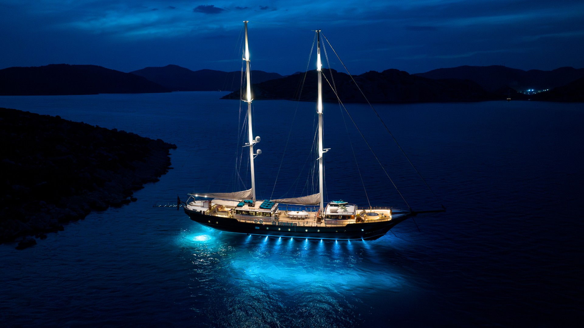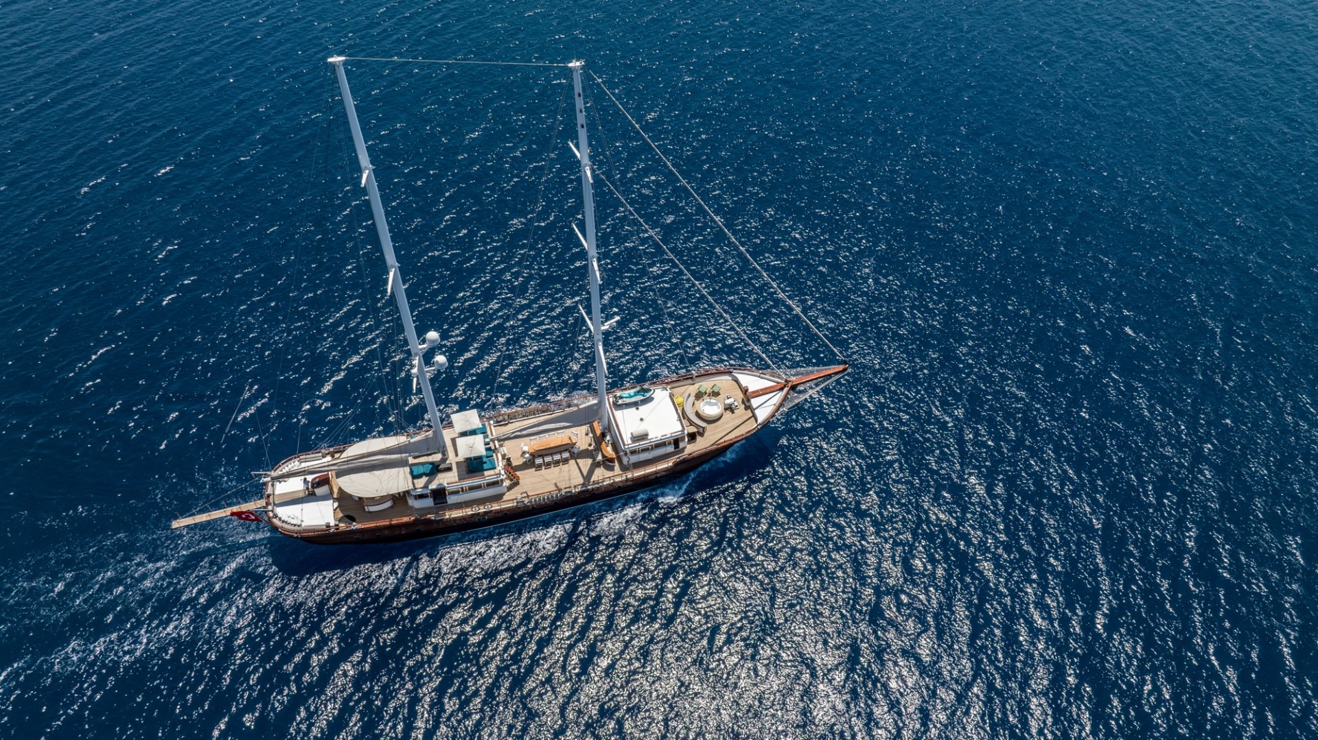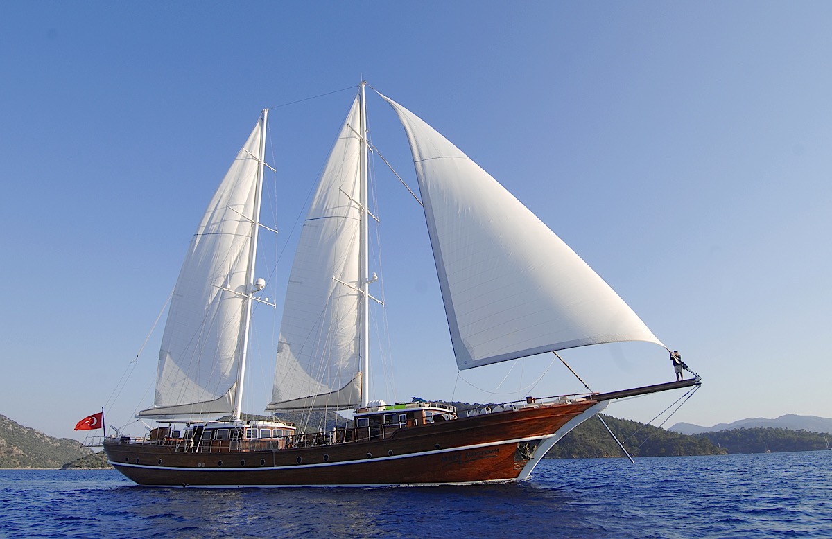 The 144’ traditional gulet, MARE NOSTRUM sails the Turkish Mediterranean and Aegean coasts and throughout Greek waters from May through to October, offering her guests a whole new world of experiences. Discover new flavours, new horizons and all the peace and tranquility of sailing. With her strong schooner rig, MARE NOSTRUM drifts along effortlessly under summer winds, with the chance to entertain a pod of cheerful dolphins.