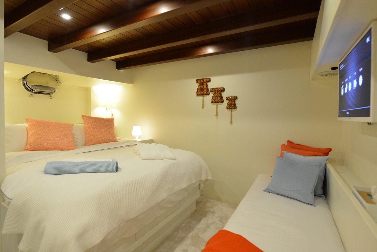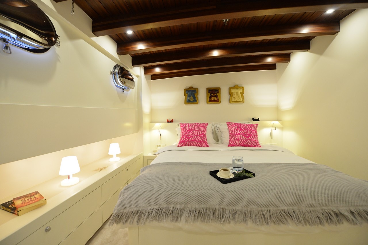WHITE SOUL accommodates up to 10 guests in five cabins: 1 Suite Master Cabin, 2 Master Cabins & 2 Double Cabins. Each of these five cabins is comfortable and well furnished, with private en suite facilities and individually controllable air conditioning.