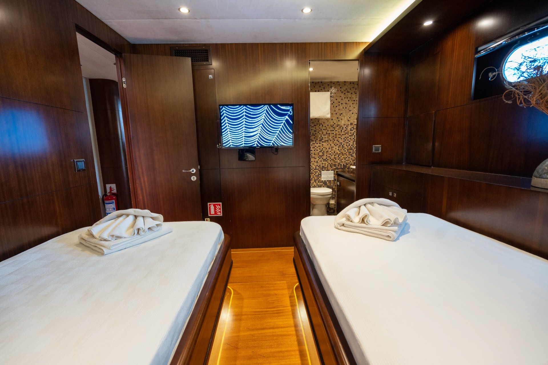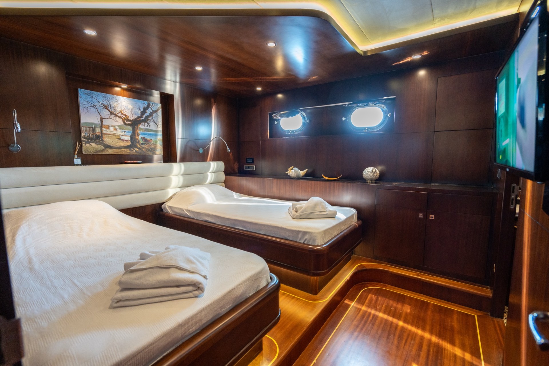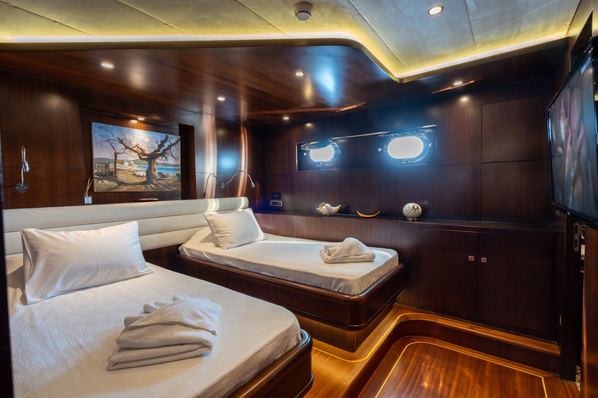 VAT, all meals and drinks for the charter, fuel for motor-operated equipment (tender, water sports), all marinas, all land tours, transfers, any personal expenses of the guests, crew gratuity (10-15% from the charter fee). Fuel surcharge for portion of charter outside of Turkish waters, any customs expenses if applicable.
