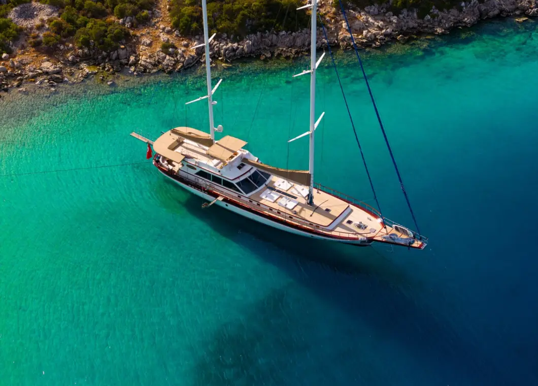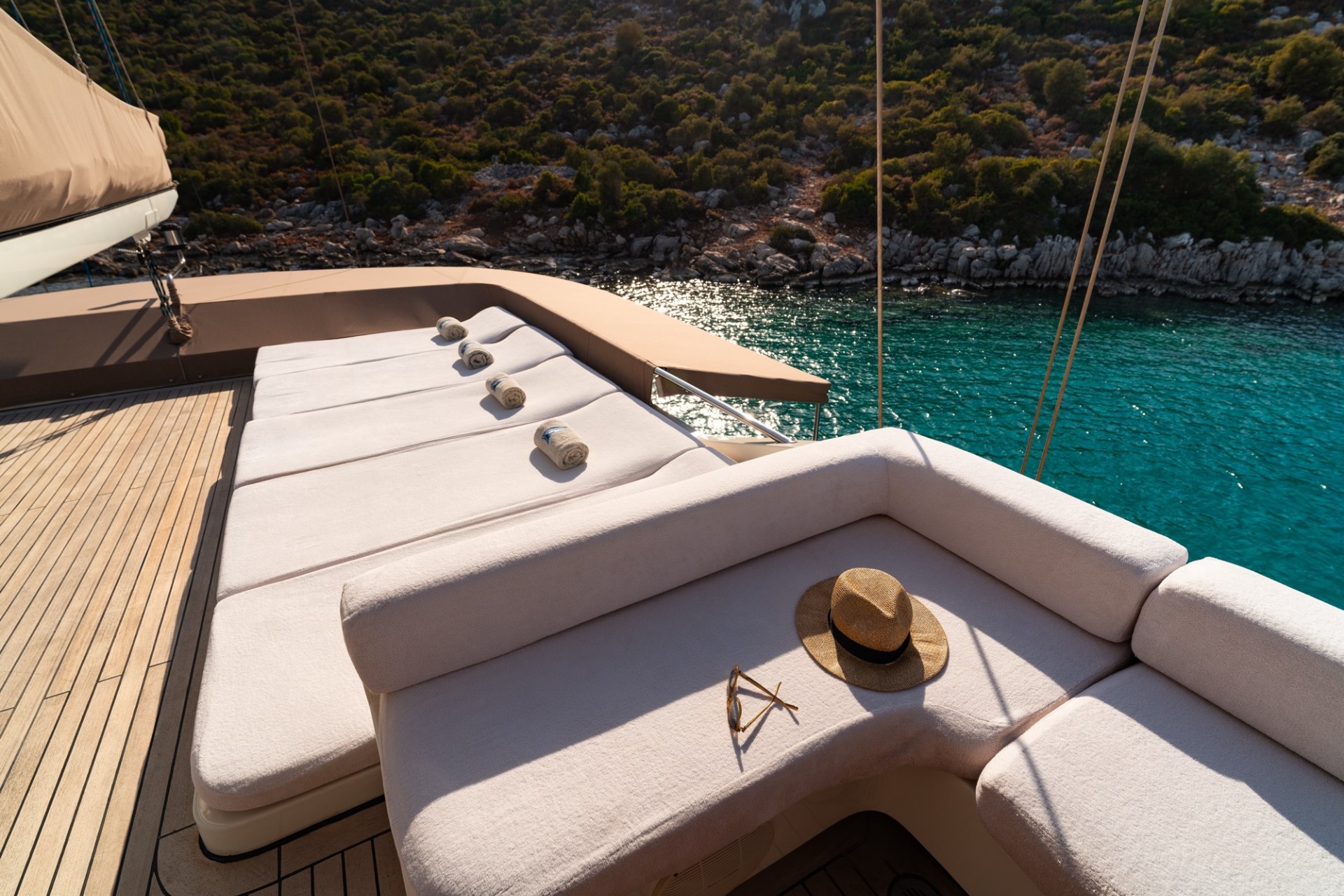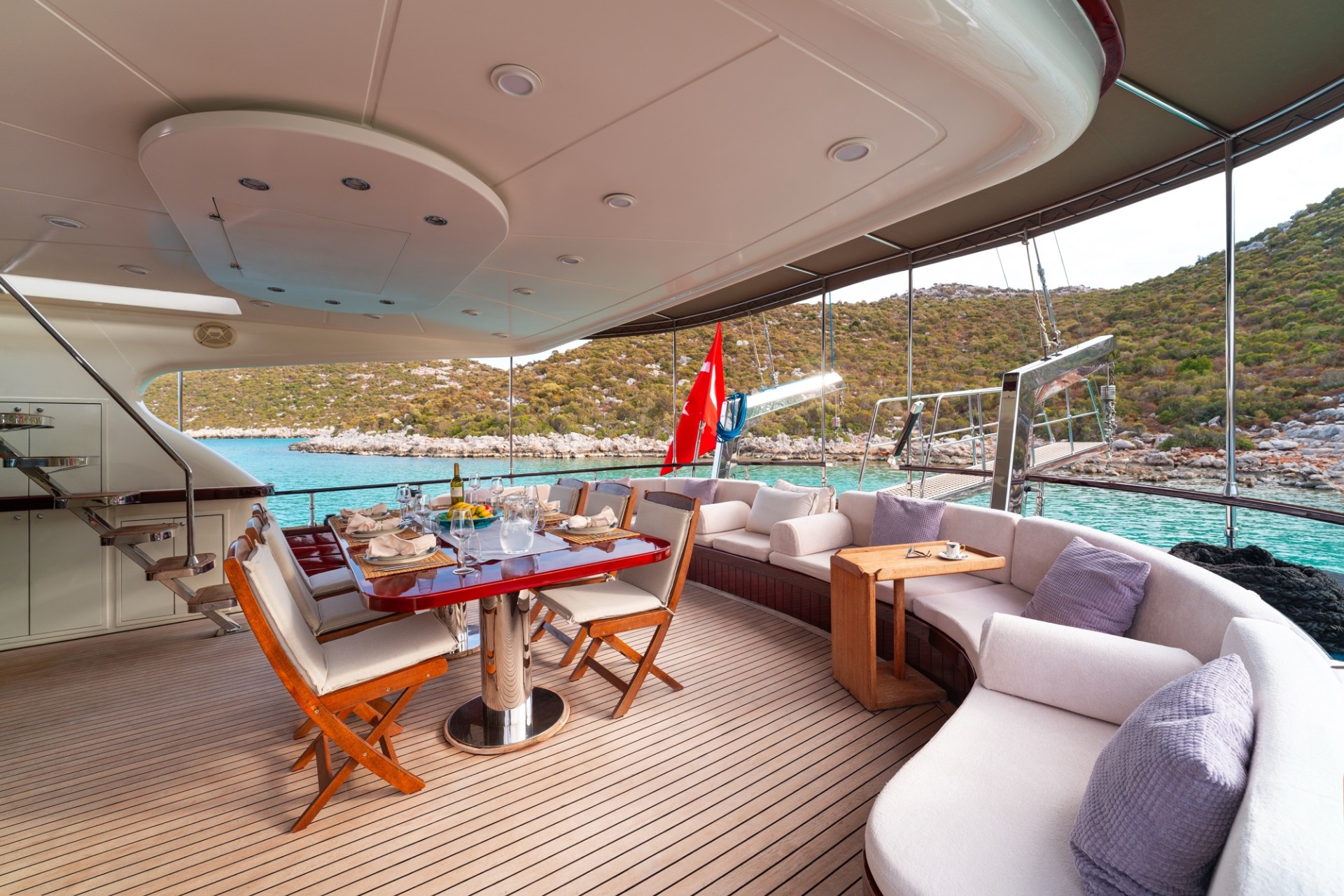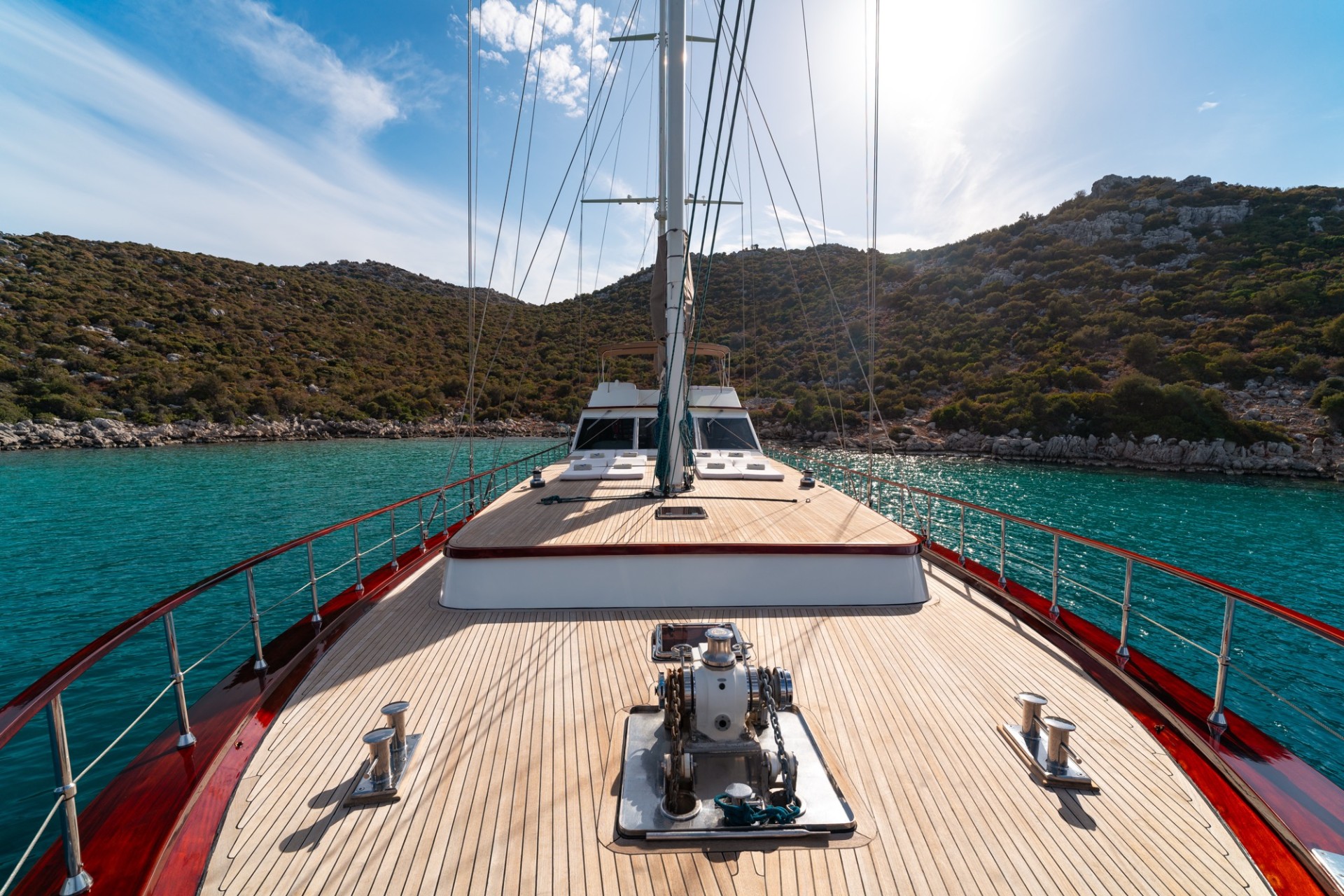 32m GETAWAY is one of the most popular charter gulets in Turkey. In fact she not a typical wooden yacht that offers Blue Cruise experience. GETAWAY also has powerful sails, and with her modern layout and interior decisions you will be having an amazing experience.