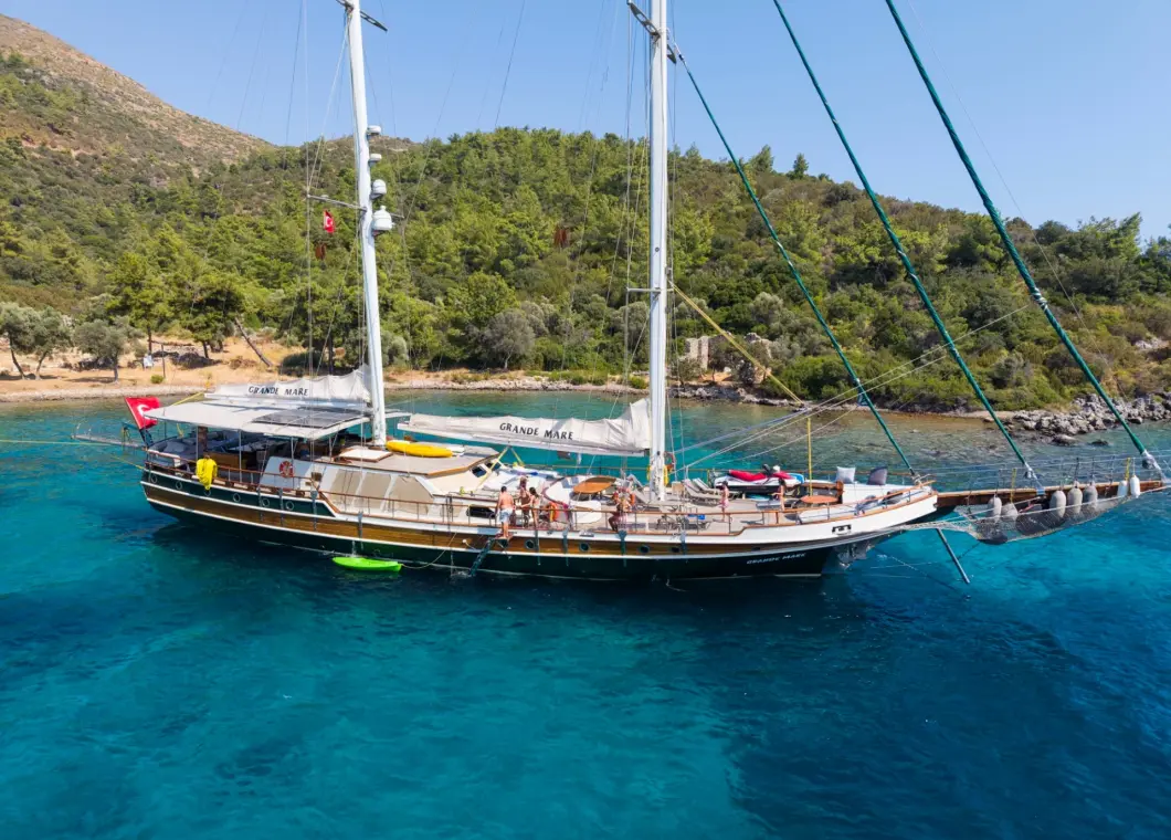 GRANDE MARE is one of the gulets built in Turkey that offer not only luxury accommodation and high quality service. Guests will also enjoy a true sailing experience as this yacht has very strong sailing equipment.