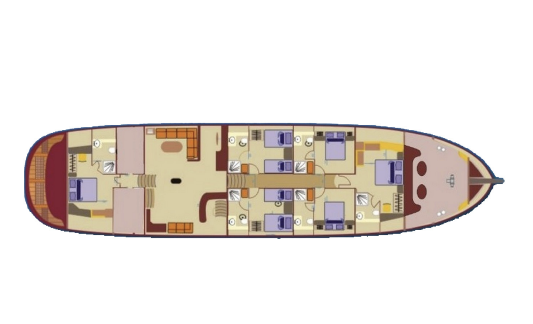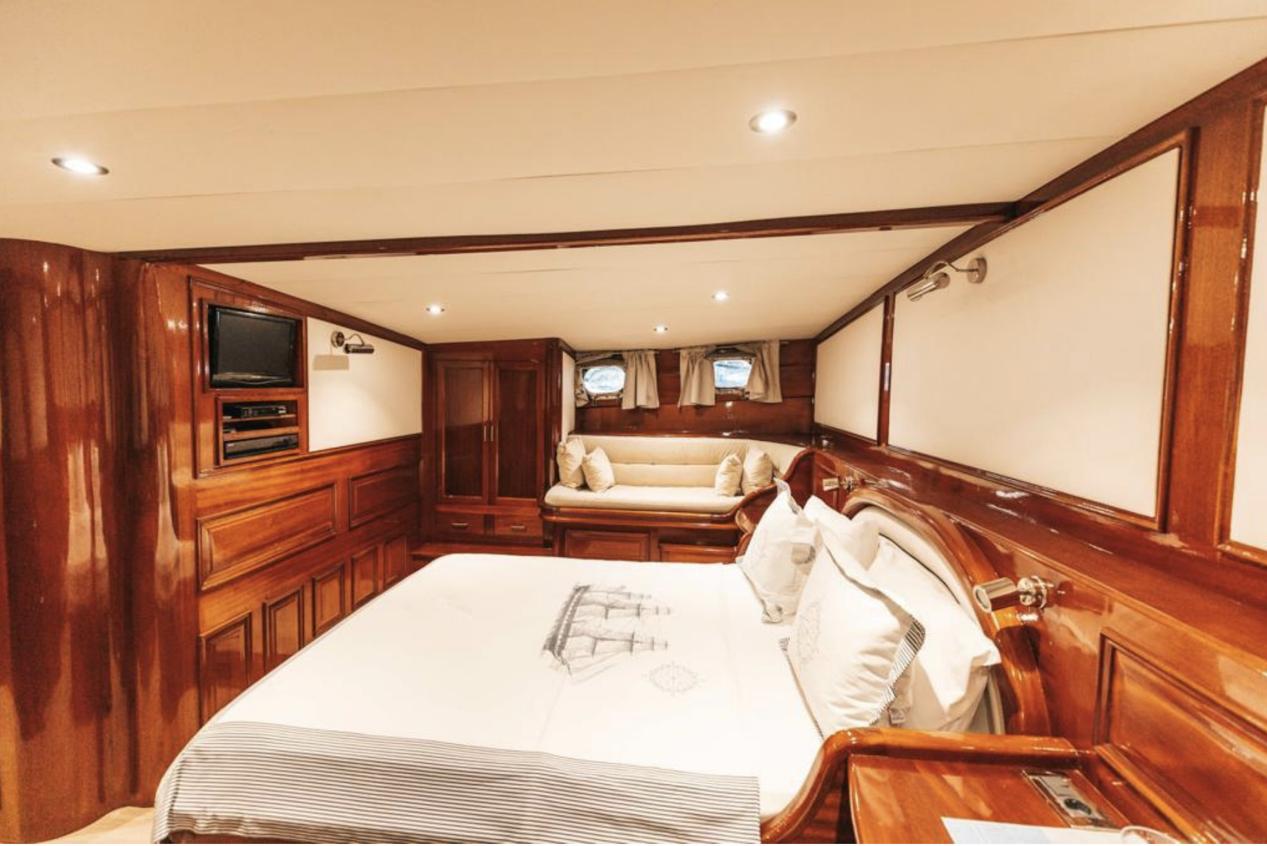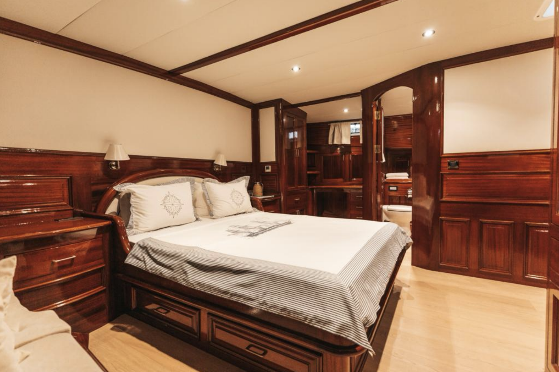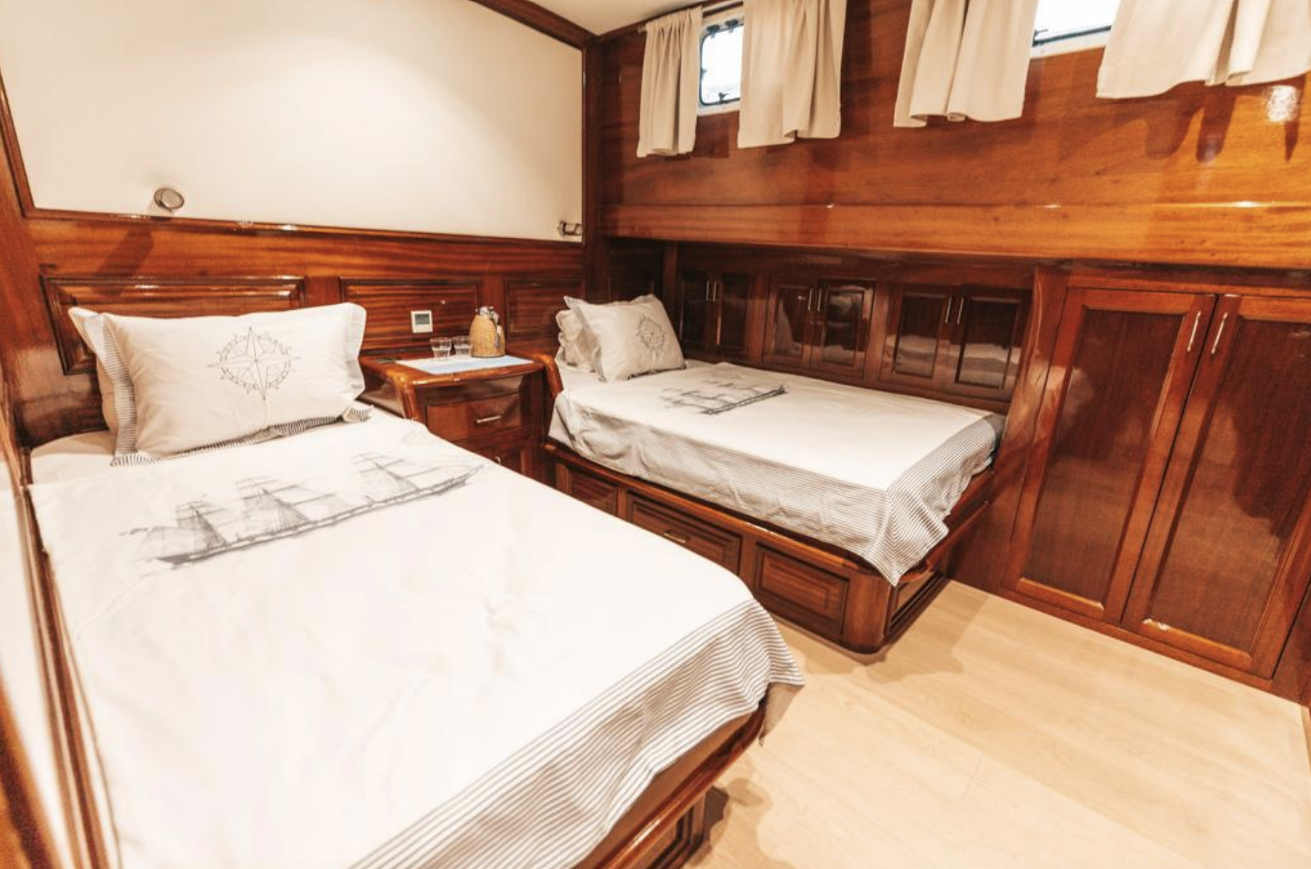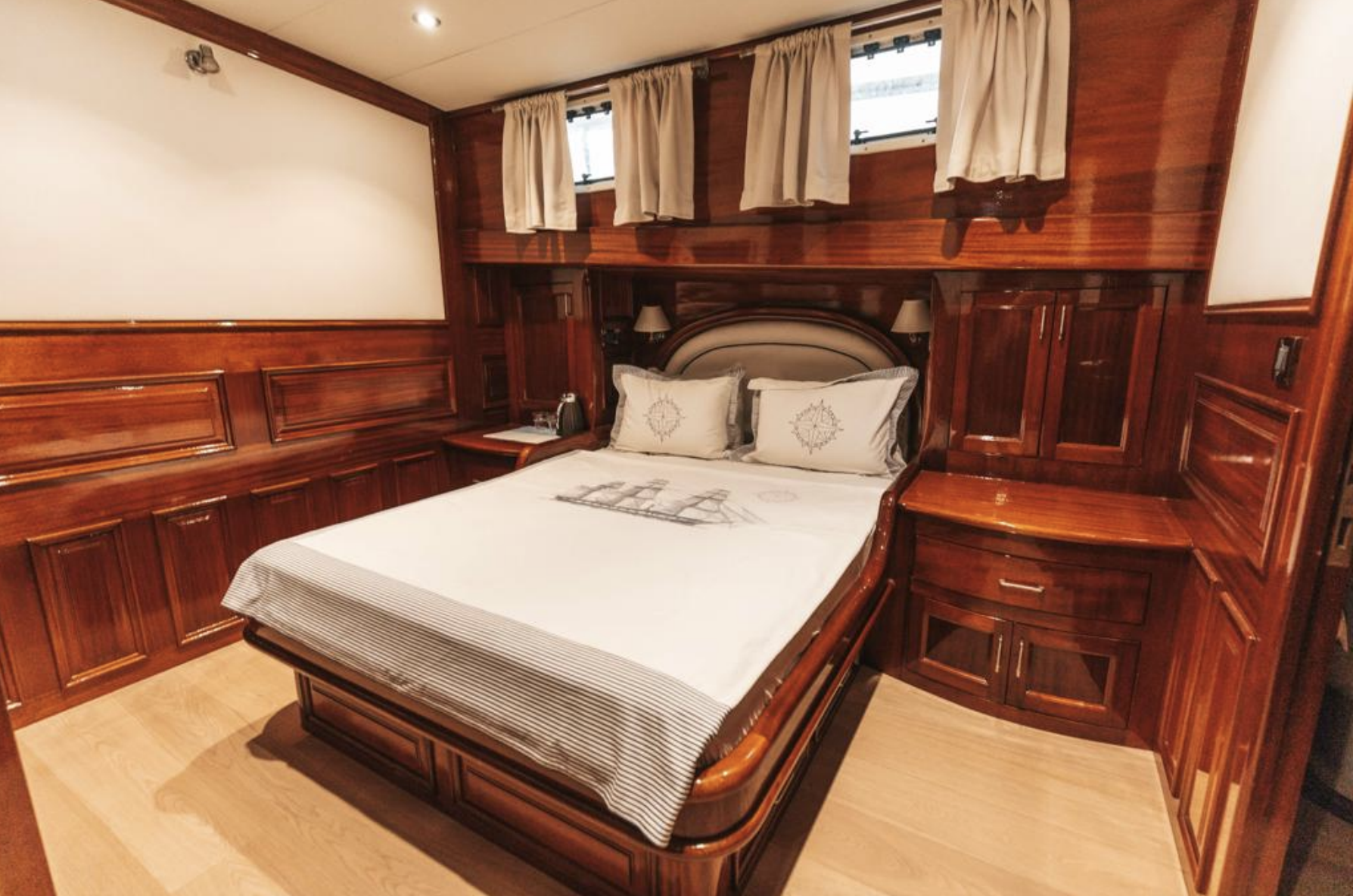 KAYA GUNERI IV has 6 cabins: 2 master, 2 double, and 2 twin staterooms. Each cabin is spacious and has enough storage place for guests’ belongings.