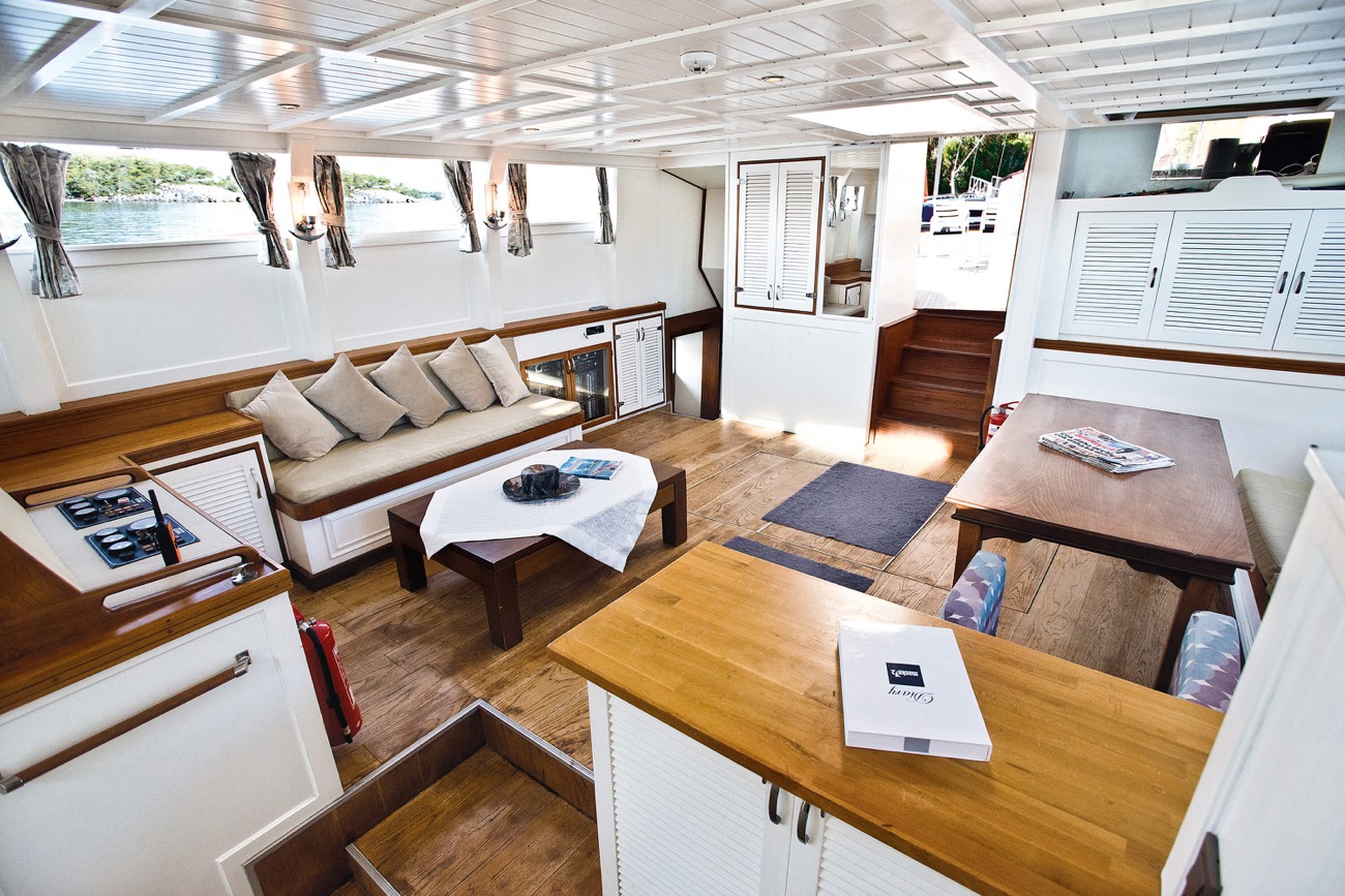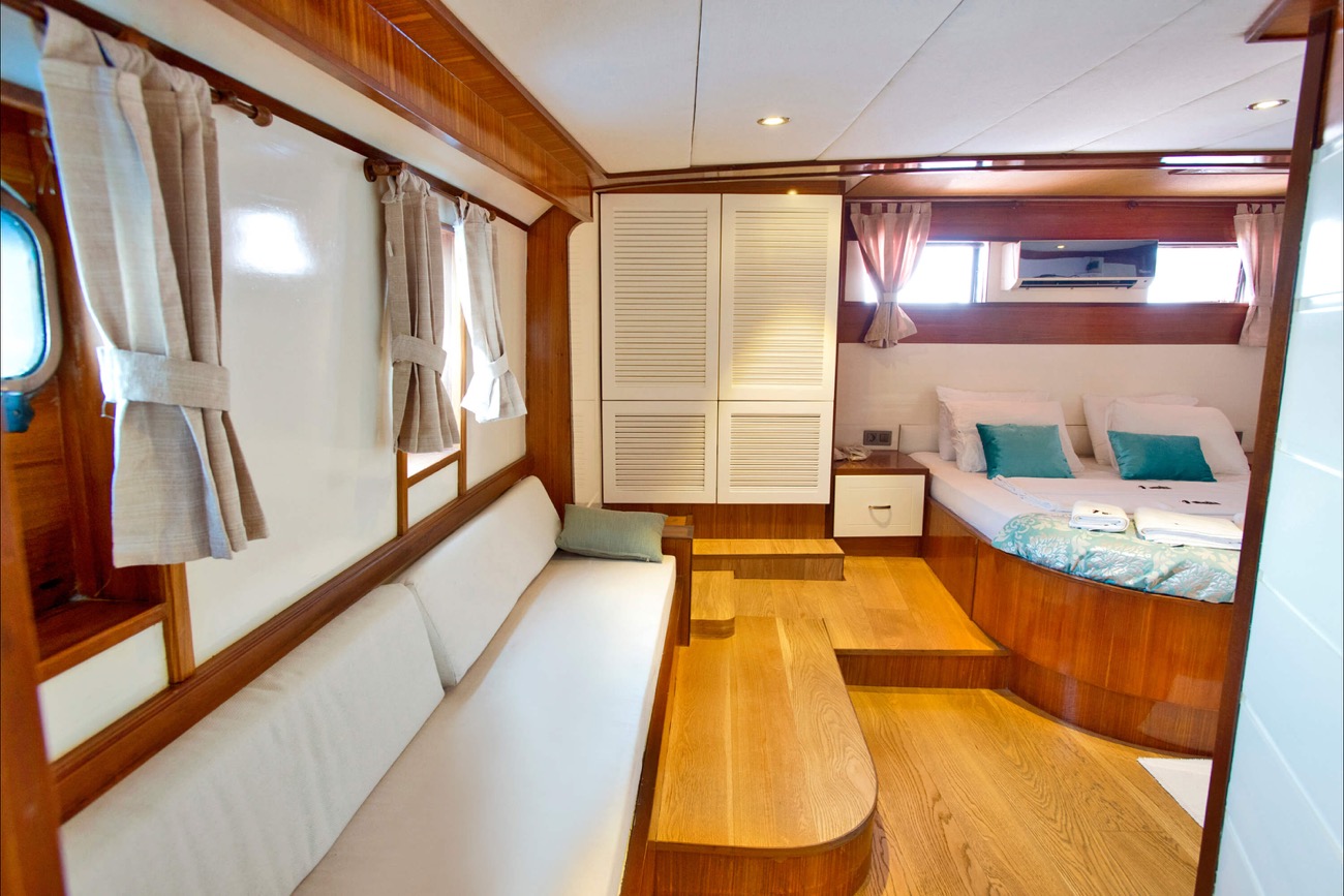 MASKE 2 gulet is not a typical classic wooden gulet with dark interior. Its distinctive white colored interior gives you a feeling of a beautiful floating summer house which is at your full disposal for a sailing vacation in Turkey.
