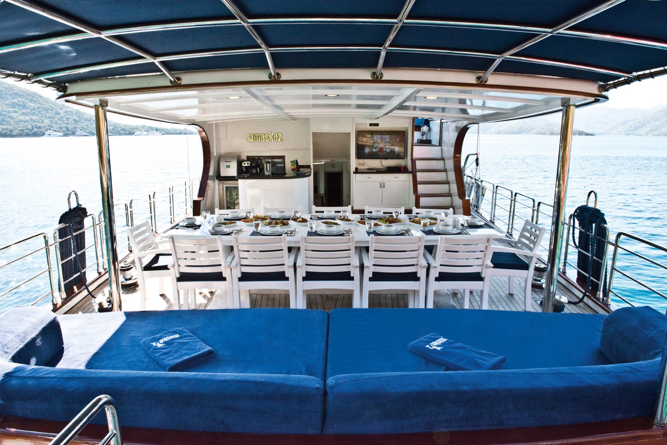 Book a yachting holiday with MASKE 2 yacht and enjoy peaceful and relaxing time onboard this spacious and outstanding gulet in Turkey.