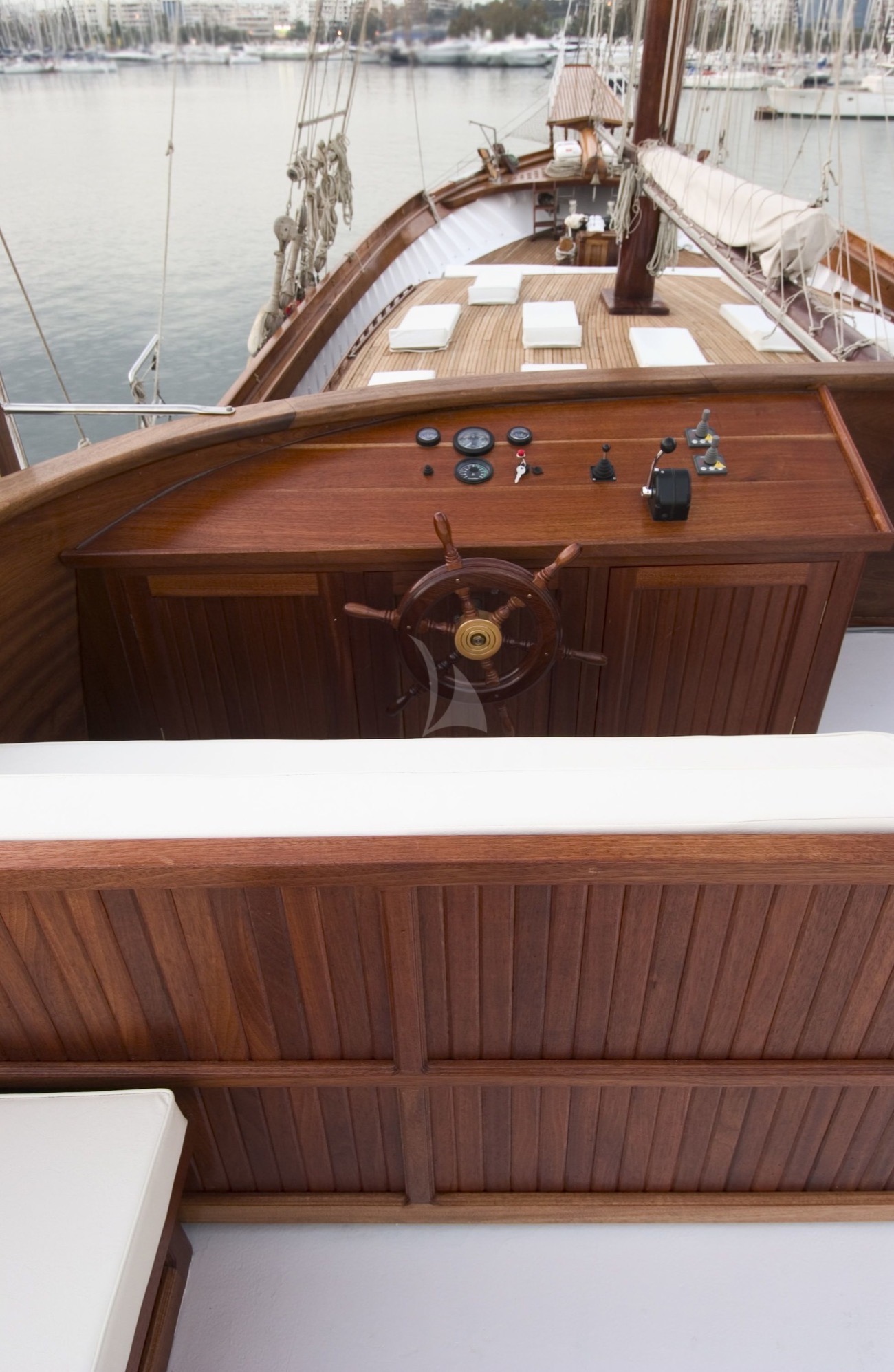 MATINA is available for luxury charter in the Greek islands with an expert crew of 6 who are on hand to ensure your comfort at all times. Enjoy the excitement of water sports in the company of your crew, and then dry off before heading forward to the sunbathing deck to bask in the sun until lunchtime. After an al fresco lunch on the shaded aft deck, gather around the aft deck's cushioned lounging area to make plans for an early evening party on the quay. MATINA is so spacious that she makes an ideal venue for entertaining friends.