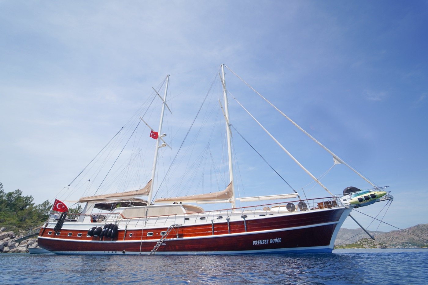 31m gulet PRENSES BUGCE is a classic Turkish wooden yacht. She was built in Turkey with a purpose to offer comfortable and luxury yacht cruises in the Eastern Mediterranean.