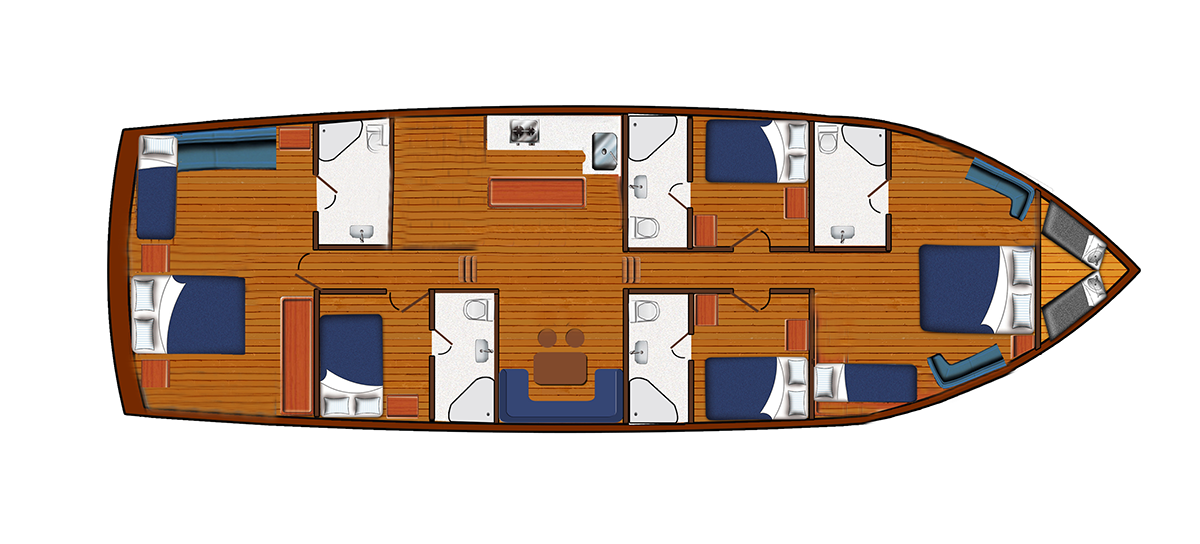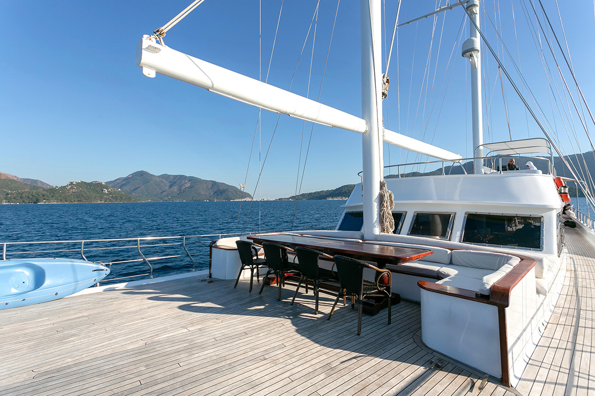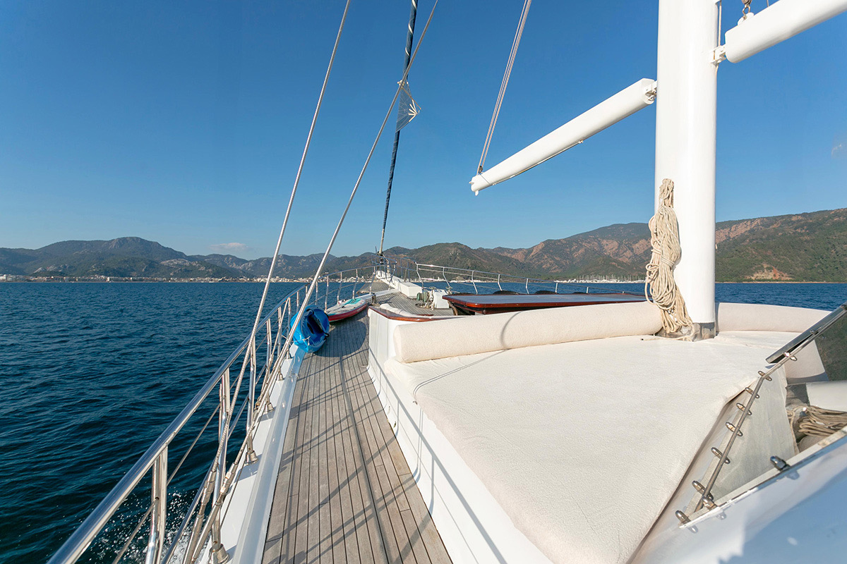 VAT, all meals and drinks for the charter, fuel for motor-operated equipment (tender, water sports), all marinas, all land tours, transfers, any personal expenses of the guests, crew gratuity (10-15% from the charter fee). Fuel surcharge for portion of charter outside of Turkish waters, any customs expenses if applicable.