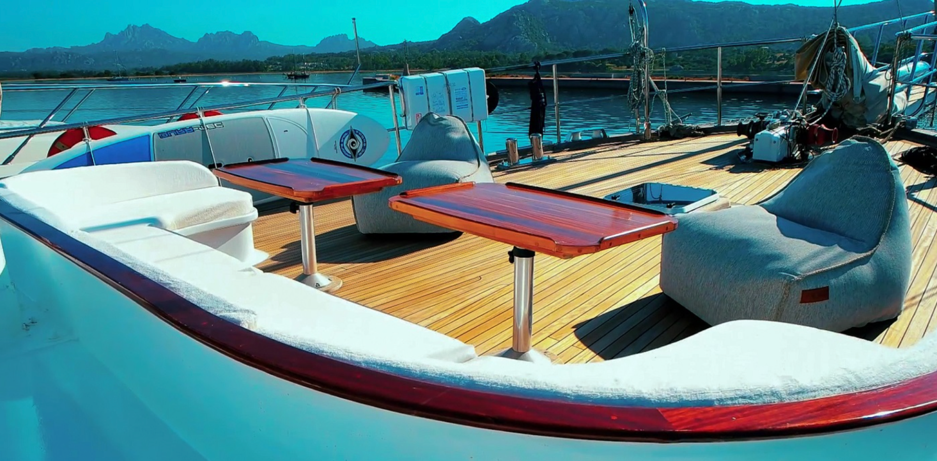 Gulet VICTORIA is a floating villa that has all the facilities for a memorable Italian vacation: various lounge areas, dining space, TV and DVD, music system, sunbeds, yacht bar, and much more. For bookings, please contact our gulet specialists who will also assist you in preparing a beautiful yacht charter itinerary while sailing in Sardinia.